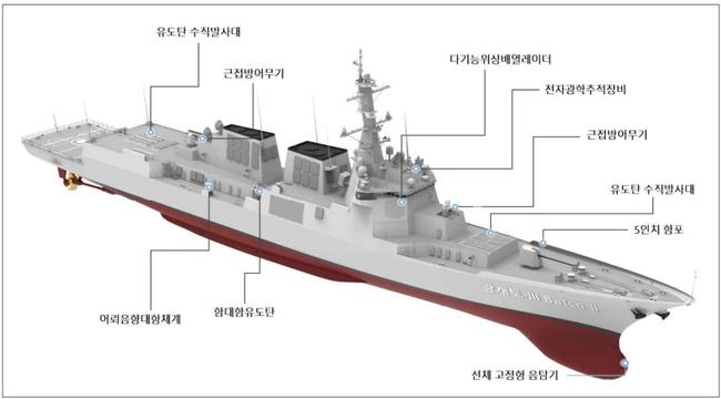 대잠전력도 대폭 강화됐다. 국내 기술로 개발한 통합소나체계를 탑재해 적 잠수함·어뢰 등 수중 위협 탐지능력이 크게 향상됐고, 장거리대잠어뢰와 경어뢰로의 대응이 가능하다. 여기에 최근 도입된 MH-60R(시호크) 해상작전헬기를 운용해 원해 대잠작전의 입체적 대응력을 갖춘다.