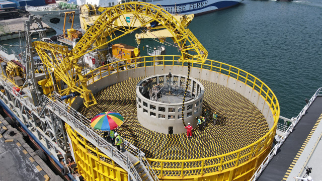 LS전선이 강원도 동해시 동해항에서 해저케이블을 선적하는 모습