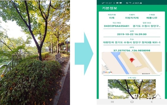 국립산림과학원이 ㈜시내엔들과 협업을 통해 개발한 이번 시스템은 나무별로 부착된 표식과 스마트폰 앱을 통해 수목의 실시간 상태, 관리 이력 등의 정보를 서버에 저장하며 동시에 확인할 수 있다.