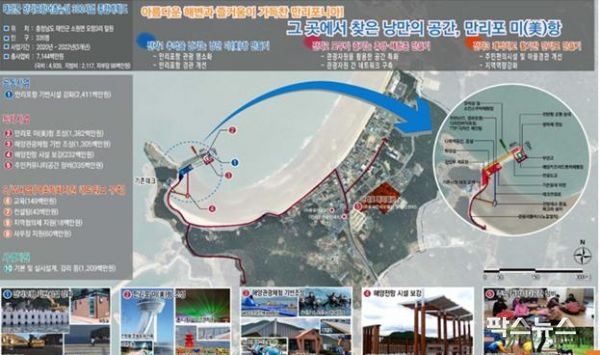 태안군은 만리포항 어촌뉴딜300사업을 통해 낙후된 어항시설을 개선하고 전망데크, 관광안내소, 스쿠버체험장 등을 조성해 지역경제에 활력을 불어 넣을 계획이라고 전했다.