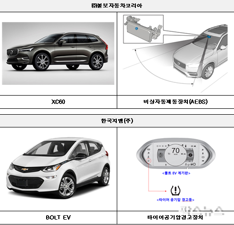 리콜 대상 자동차 이미지 첫째, 볼보자동차코리아에서 수입, 판매한 XC60 등 8개 차종 1만3846대는 비상자동제동장치의 소프트웨어 오류로 전방 장애물을 제대로 인식하지 못하는 등 비상자동제동장치가 작동하지 않아 안전운행에 지장을 줄 가능성이 확인되어 시정조치에 들어간다.