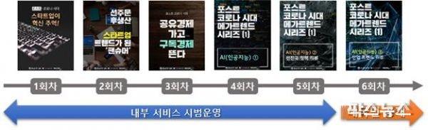 중기부와 창진원은 그동안 제작했던 트렌드·이슈들과 AI 연속기획 시리즈에 이어 최근 급부상하고 있는 ‘언택트 산업 트렌드’와 ‘포스트 코로나 시대 국내외 스타트업 정책’ 등 다양한 주제를 기획해선보일 계획이라고 전했다.