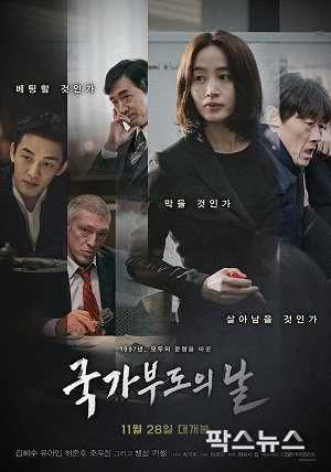 개봉 첫 주 박스오피스 1위...180만 관객을 동원한 영화 '국가부도의 날' 포스터김혜수, 유아인 주연의 사회 드라마 <국가부도의 날>이 개봉 첫 주 박스오피스 1위에 오르며 180만 관객을 동원했다.