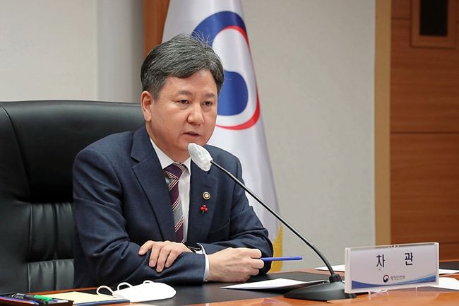 한창섭 행정안전부 차관이 10일 오전 서울시 종로구 세종대로 정부서울청사 12층 중회의실에서 열린 `2023년 제1차 시 · 도 기조실장 영상회의`에 참석해 모두발언을 하고 있다.