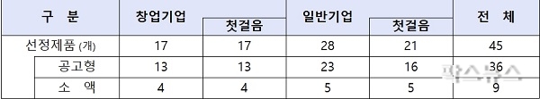 특히, 선정제품 중 첫걸음기업 제품이 전체 선정제품의 약 84% 수준을 차지한 점을 비추어 볼 때, 공공조달에 처음 진입하는 제품의 납품 실적 확대에 크게 기여할 것으로 예상된다.
