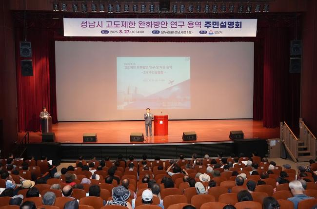 성남시(시장 신상진)는 27일 오후 2시 시청 온누리에서 '제3차 고도 제한 완화방안 연구 및 자문 용역'과 관련한 주민설명회를 열었다.
