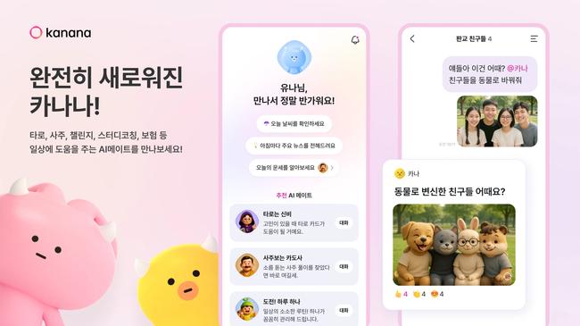 카나나는 그룹 AI 메이트 ‘카나’, 개인 AI 메이트 ‘나나’와 대화하며 AI를 일상 속에서 체험하는 실험적 플랫폼으로, 지난 4개월간 베타 서비스 운영을 통해 이용자 피드백을 반영한 기능 개선을 이어왔다.
