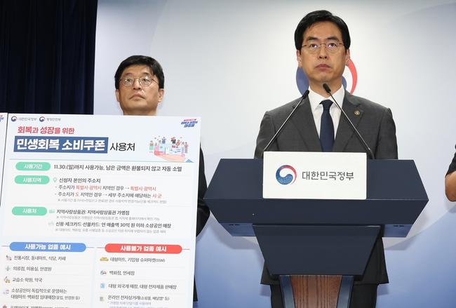 김민재 행정안전부 차관이 12일 오전 서울시 종로구 정부서울청사 브리핑실에서 '민생회복 소비쿠폰 2차 지급계획'을 발표하고 있다.