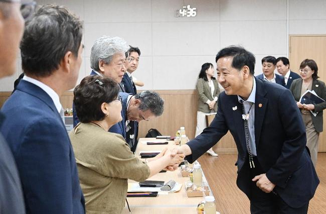 환경부(장관 김성환)는 국회 환경노동위원회 안호영 위원장과 함께 8월 6일 오후 국회 의원회관 제1세미나실에서 가습기살균제 피해자단체 대표들을 만나 다양한 의견을 청취했다. 김성환 환경부장관이 6일 오후 국회의원회관에서 열린 가습기살균제 피해자 대표와의 간담회에서 피해자 분들의 의견을 경청하고 있다. 이번 간담회는 지난해 6월 대법원이 가