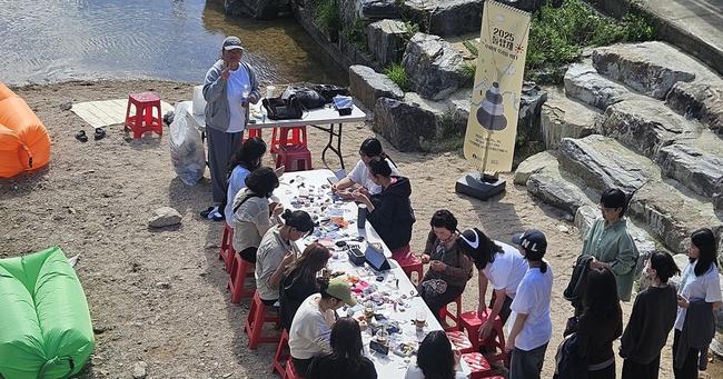 덕성여대 정문 앞 우이천변에서 진행된 〈2025 돌탑제 : 우이의 우리를 엮다〉 현장. 학생과 지역주민들이 함께 어우러지며 예술로 ‘우리’를 엮는 시간을 가졌다.