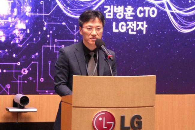 LG전자가 24일 LG전자 서초R&D캠퍼스에서 한국과학기술원(KAIST), 한국표준과학원(KRISS)와 함께 개최한 ‘Future 2030 서밋’에서 LG전자 CTO 김병훈 부사장이 환영사를 하고 있다.