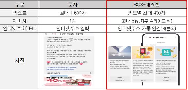RCS는 카드형 이미지와 URL 버튼 등을 포함할 수 있어 기존 문자보다 시각적 전달력이 뛰어난 것이 특징이다.