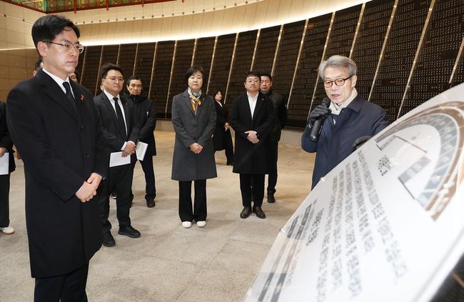 김민재 행정안전부 차관이 19일 오전 제주시 명림로 제주4·3평화공원 위패봉안실을 찾아 관계자로 부터 시설현황을 청취하고 있다.