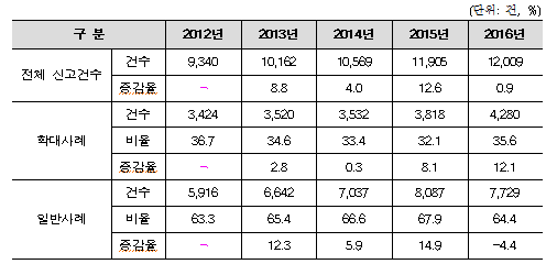 보고서에 따르면 2016년 노인학대 신고는 총 12,009건이고, 그 중 노인학대 건수는 총 4,280건으로 전년 대비 12.1% (3,818건→4,280건, , 462건↑) 증가했다.